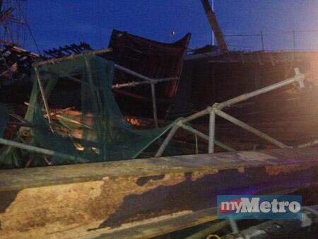 BATU MAUNG: Sebahagian dari struktur jambatan kedua Pulau Pinang yang masih dalam pembinaan telah runtuh kira-kira jam 7 malam tadi.